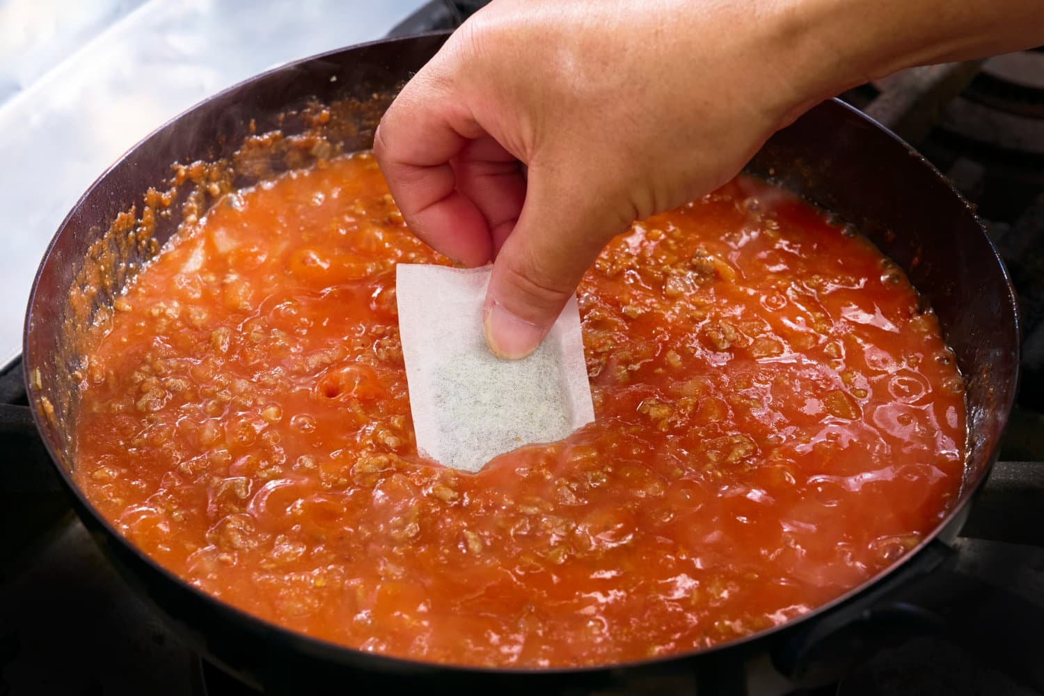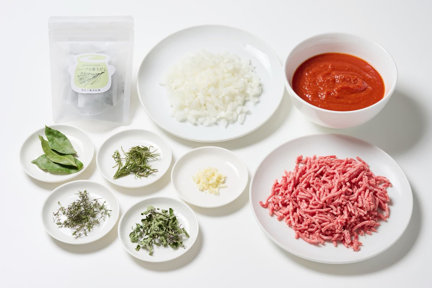 ブーケガルニがひき肉の臭みを消してくれます。オレガノやタイムが入っているのでトマトとの相性も抜群。お店の味にも負けないソースを作りましょう。